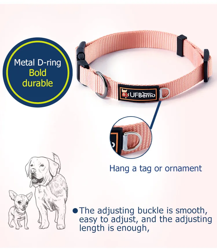 Ошейник для собак UFBemo, мягкий прочный однотонный ошейник для питомцев, ошейник для маленьких больших собак, товары для щенков, аксессуары для домашних животных, розовый цвет