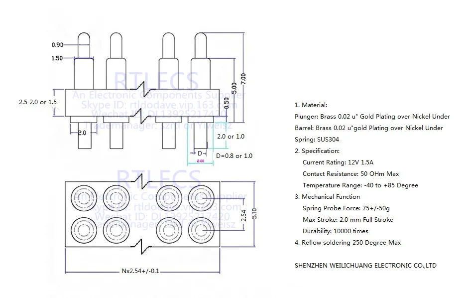 Пружинный контактный разъем Pogo 4 6 8 10 12 14 16 20 Pin 2,54 мм шаг
