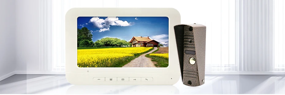 Спецификация внутреннего монитора Разрешение: 800*480 Материал: АБС-пластик 7 дюймов Цвет ЖК-дисплей видеодомофон монитор Разблокировка электронного замка Мониторинг Двусторонний Интерком между монитором и дверным звонком Низкое энергопотребление, отсутствие излучения Наружный дверной Звонок Разрешение: 800TVL Дневное ночное видение Материал: металл Рабочая температура:-40-+ 60 градусов
