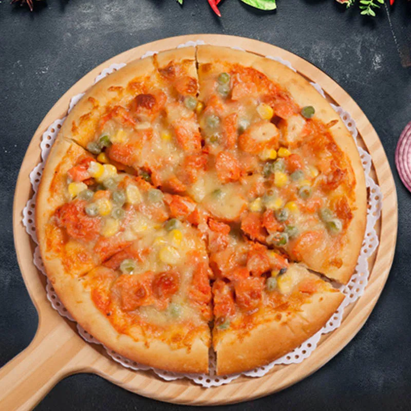 Универсальная деревянная Корка Для Пиццы может использоваться как разделочная доска и поднос для сервировки.