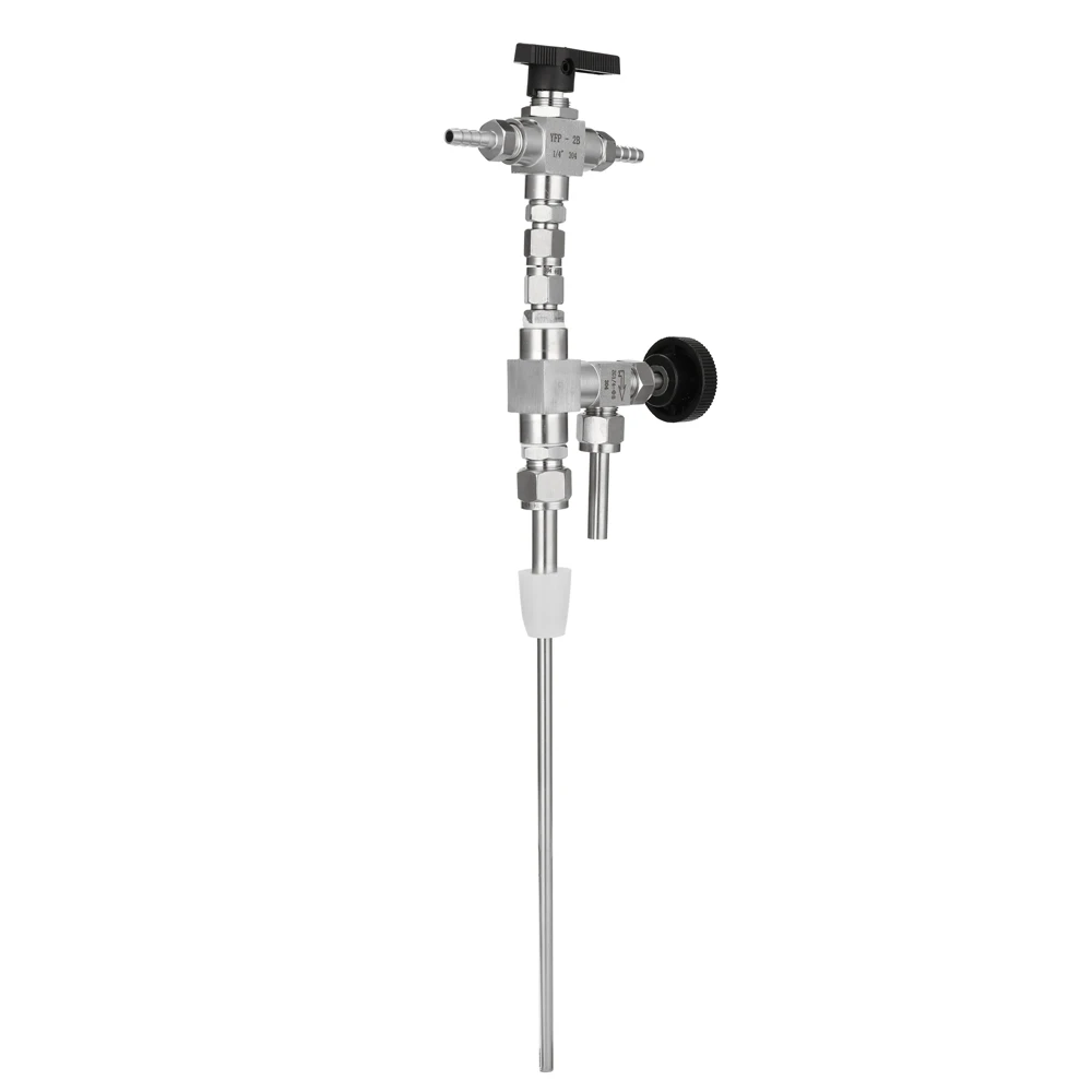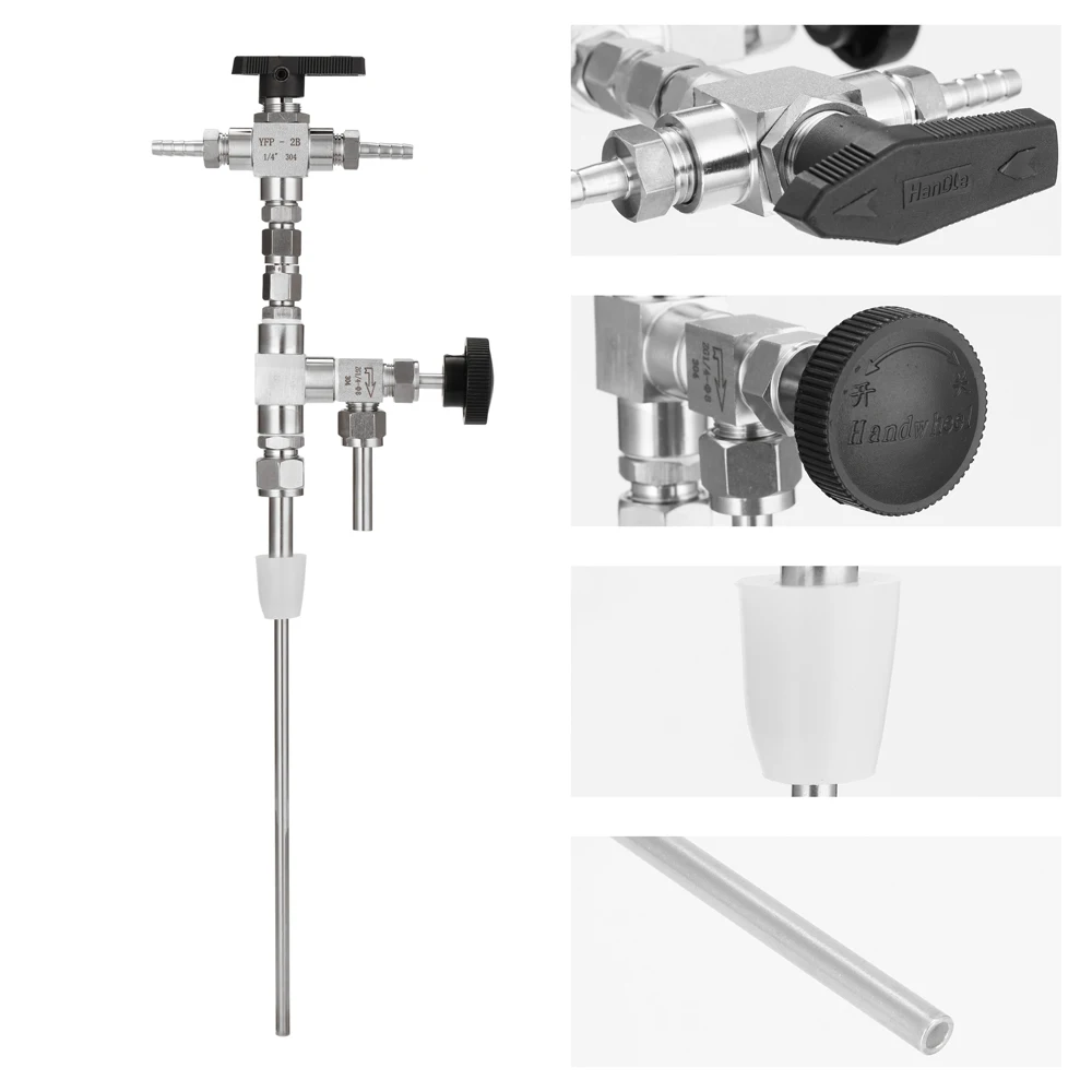 Оснащен специальным клапаном, который позволяет СО2 и пиву распылять одну и ту же нержавеющую трубку прямо на дно бутылки.