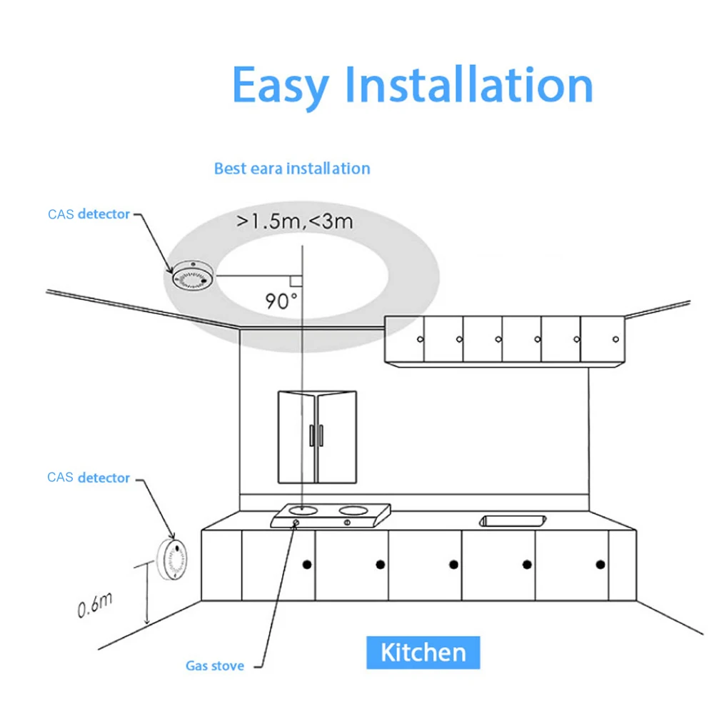 [Обнаружение природного газа и LGP]Данный детектор газа в основном используется на кухне для обнаружения утечки природного газа (метана) и сжиженного нефтяного газа (сжиженного нефтяного газа), что позволяет предотвратить возможный взрыв газа и обеспечить безопасность всей семьи.