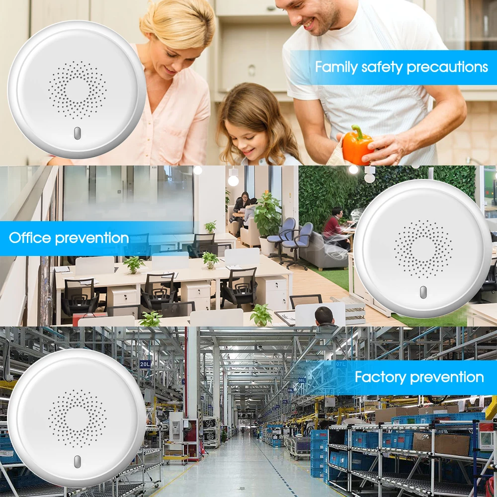 Продукт является умным детектором горючих газов ZigBee Tuya с звуковой сигнализацией. При запуске детектора газа, он будет сигнализация со встроенной сиреной. Данный детектор оснащен полупроводниковым датчиком, который является стабильным и надежным. Он предохраняет место от опасностей, связанных с горючим газом (например, сжиженным нефтяным газом, природным газом, метаном и т. д.). Он широко используется в кухне, гостиной, гараже, торговом центре, отеле, ресторанном, офисном корпусе, школе, банке, школе, компьютере и складе, И т. Д., где нет водяного пара и есть проблемы с горючим газом.