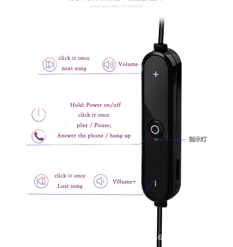 Особенности:-эксклюзивные патенты на дизайн, эргономичный дизайн наушников, удобно носить и легко падать. -Дизайн ушей, снижающий лучшие мировые басы. -Уникальный Магнитный контроль, не легко упасть. -Встроенный микрофон с высокой чувствительностью, более четкое качество голоса. -Встроенный литиевый аккумулятор, поддерживает 2 часа быстрой зарядки, обеспечивает до пяти часов воспроизведения музыки/разговора. -Bluetooth один с двумя для удовлетворения потребностей нескольких источников. -С помощью кнопки воспроизведения вы можете управлять музыкальным проигрывателем, совершать и принимать звонки и другие функции. Характеристики:-версия Bluetooth: CSR4.1-область работы: 10 метров (отключено)-время работы в режиме ожидания: 180 часов-Время работы: 2-3 часа-Время зарядки: 2 часа-Соглашение о поддержке: A2DP, AVRCP, HSP, HFP-Частотная характеристика: 20 Гц-20 кГц комплектация: 1 bluetooth-наушник 1 * usb-кабель для зарядки 1 * Руководство пользователя