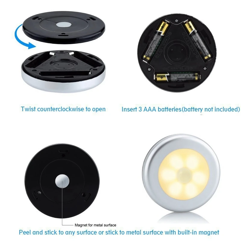 Установка: приклейте к любой металлической поверхности со встроенным магнитом, отлично работает в помещении и на открытом воздухе, особенно как ночной Светильник для лестниц, ступеней, коридоров, темных шкафов и шкафов.
