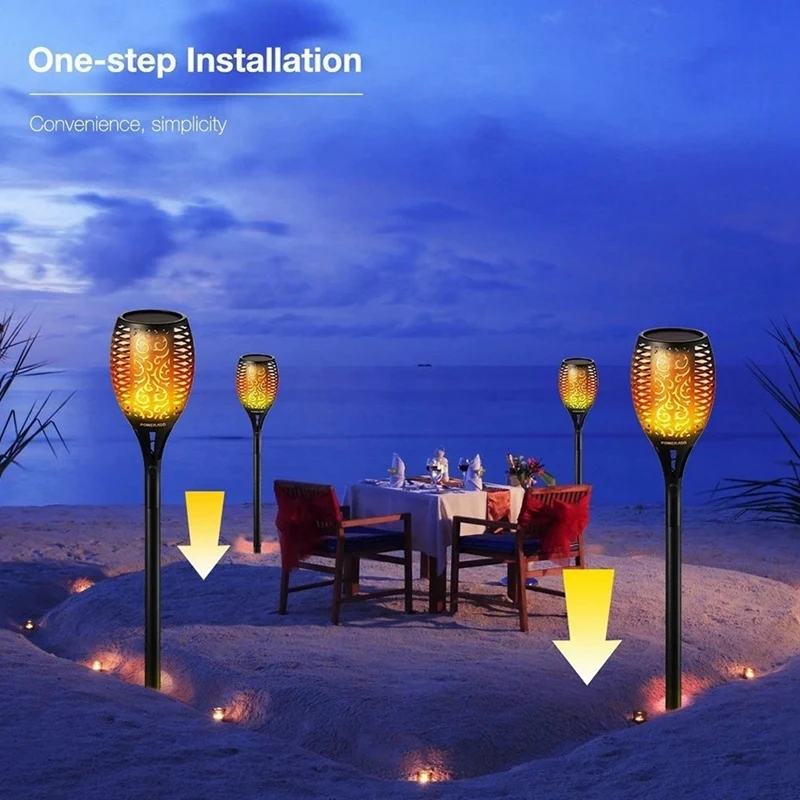 Electricity is converted from solar power, and lights turn on automatically at dusk.