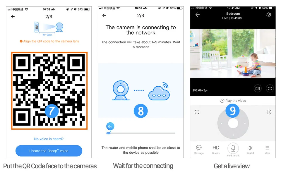 Пожалуйста, обратите внимание, когда вы размещаете заказ, пожалуйста, выберите правильную версию, которую вы хотите:Посылка включает:Только sd-карта 64G= Означает только sd-карту 64G, камера отсутствует1080P= Означает только камеру 1080P1080P с 32G SD= Означает 1080p камеру с 32G sd-картой1080P с 64G SD= Означает 1080p камеру с sd-картой 64GСпецификацияРазрешение: 1920*1080P @ 25 кадров в секундуСигнальная система: PAL/NTSCАудио вход/выход: Встроенный аудио/микрофон (двухстороннее аудио)Дневной и ночной переключатель: Двойной ИК-фильтр с автоматическим выключателемРазмер объектива: плата объектива 3,6 мм/F2.0Минимальная освещенность: 0,01 люкс низкая, 0LUX/F1.2(Led on)ИК-расстояние: до 33 футов/10 м (зависит от окружающей среды и объектива)PTZ: горизонтальная 320 градусов, Вертикальная 90 градусовПоддержка tf-карты: Максимальная до 64 Гб TF карта (опционально)Режим записи: вручную/время/БудильникРежим хранения и емкость: TF карта/ПК/NVR, поддержка макс. 64 ГБ TF карта (не входит в комплект)Сеть: Wi-Fi/802,11/b/gИсточник питания: 5 В постоянного тока 1.6AУсловия эксплуатации:-10 °-55 °Материал: АБС-пластик, для использования в помещенииСписок посылка1x Беспроводная ip-камера1x источник питания1 Руководство пользователя (только на английском языке)1 Нижняя крышка и винты1x кронштейнSd-карта является необязательной.