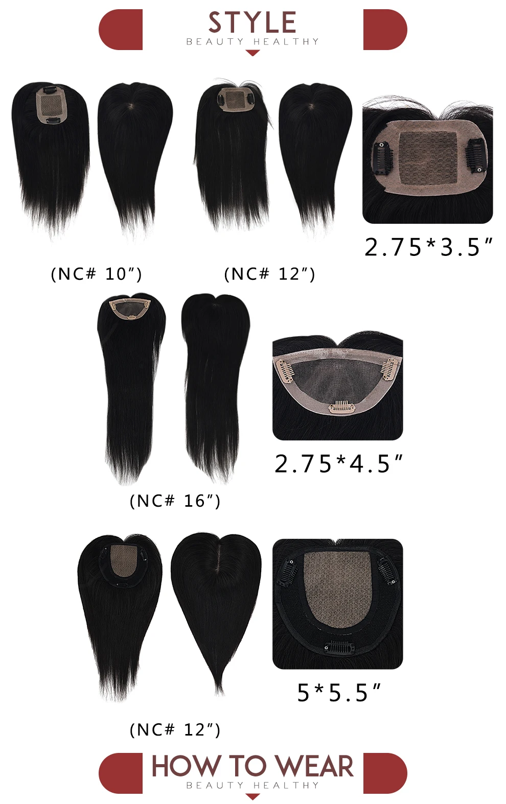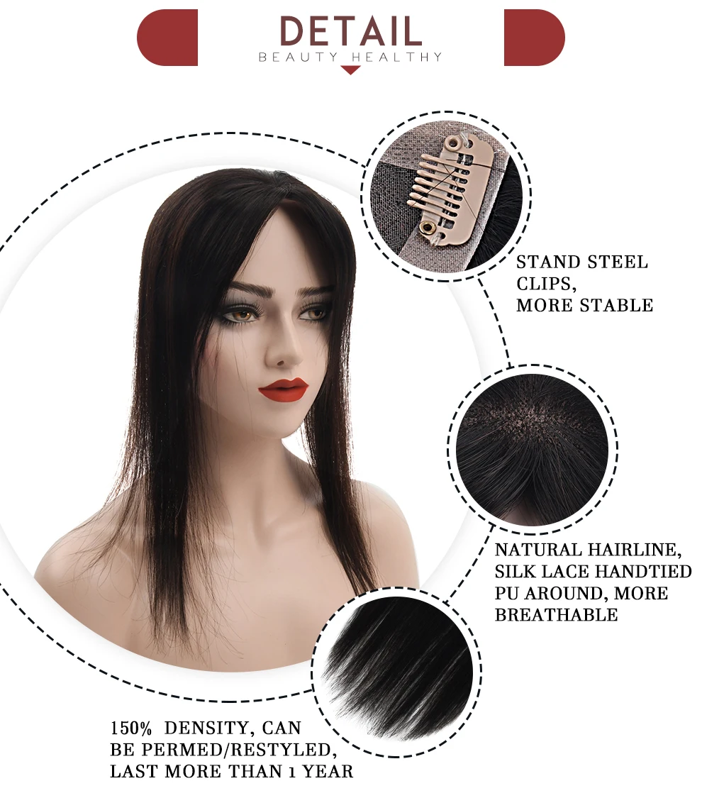 Тип товара: верхние парики для женщин, накладные волосы Размеры основания: 4,5X2,75" Доступные цвета волос: NB (натуральный черный) Длина: 16 дюймов (40 см) Текстура волос: прямые волосы Материал волос: 100% индийские человеческие волосы, без смешанных волос животных, без подделок Особенности волос: Невидимый, идеально смешивается с вашими волосами, удобный тип, естественная линия волос Концы: могут быть обработаны/выпрямлены/нагреваются/изменены. Тип волос: свободная часть, может быть частью в любом месте/естественная линия волос/кожа головы близко к цвету кожи. Доставка: через Aliexpress стандартную доставку, нам нужно около 2 ~ 3 недель, 3 ~ 4 недели в евро, если вам нужно срочно, пожалуйста, выберите FedEx или DHL; Направляющие: Только светильник может быть окрашен в темный цвет. Попробуйте покрасить один кусок волос, чтобы убедиться, что волосы не испорчены При окрашивании вместо окрашивания волос. Наращивание волос может быть скручено только палочками для волос или выпрямителями для волос. Термостойкая температура to120 градусов (248 ℃), пожалуйста, убедитесь, что температура хорошо контролируется.