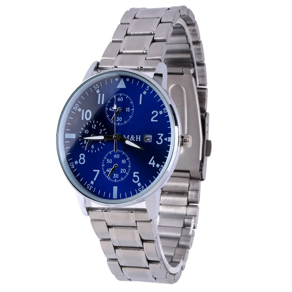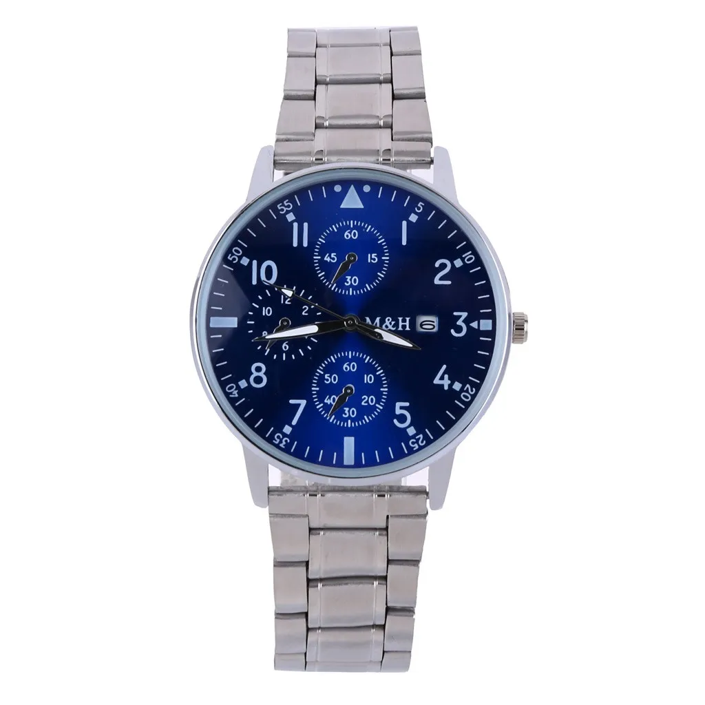 Полоса из нержавеющей стали, металлическая текстура, чтобы удовлетворить ваши тактильные удовольствия, материал из нержавеющей стали может лучше удовлетворить ваши погоня за блеск для часов Циферблат с циферблатом с календарем, роскошный и практичный, вы можете получить хорошее представление о дате, чтобы вы могли организовать маршрут Трехглазный декоративный циферблат (нельзя поворачивать) придает часам более темпераментный вид, придавая Вам лучший опыт ношения. Подходит для любого случая Легко сочетаетсяХарактеристика: