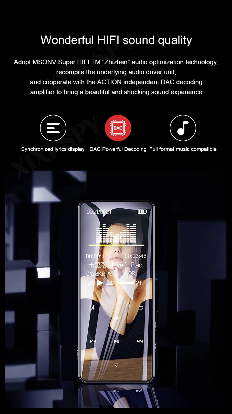 Используйте технологию MSONV Super HIFI TM «Zhizhen» для оптимизации звука, перекомпилируйте Основной блок аудио драйвера и сотрудничайте с независимым действием DAC усилитель декодирования, чтобы принести красивый и шокирующий звук Синхронизированный дисплей текста ЦАП мощное декодирование Полноформатная Совместимость с музыкой