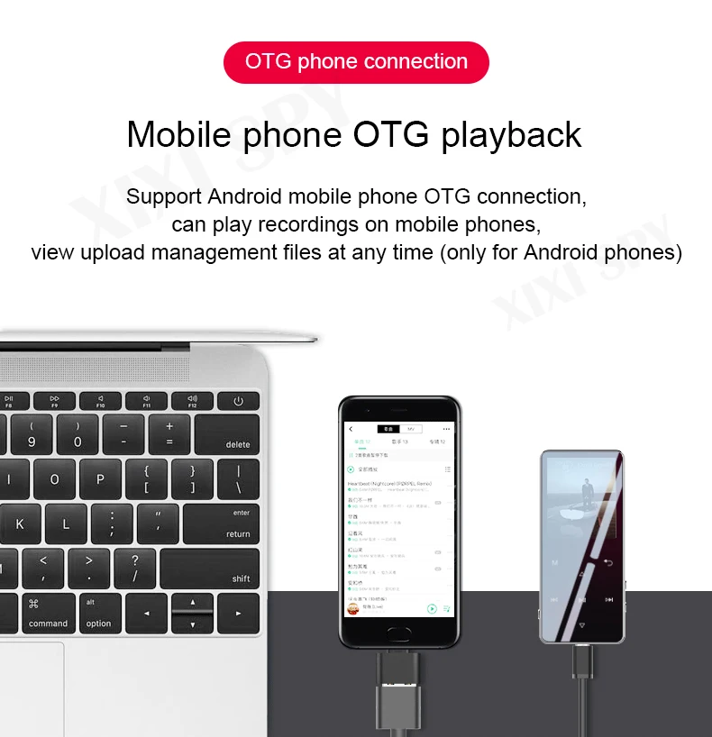 Воспроизведение OTG мобильного телефона Поддержка Android мобильный телефон соединение OTG, может воспроизводить записи на мобильных телефонах, просматривать файлы управления загрузки в любое время (только для телефонов Android)