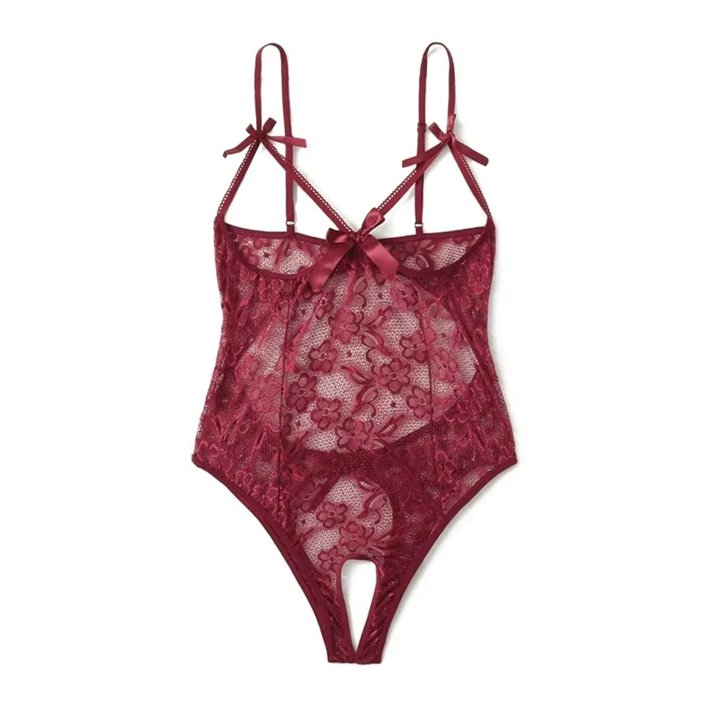 Сексуальное Женское боди с бантом, кружевное открытое нижнее белье с открытой промежностью размера плюс, боди с открытой спиной, сексуальное нижнее белье
