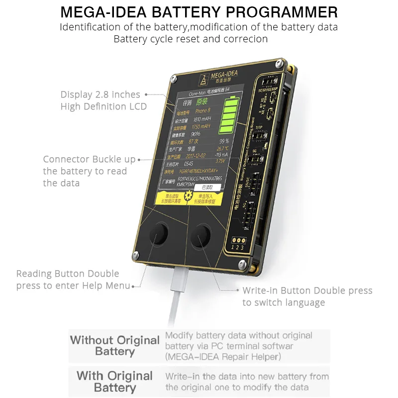 MEGA-IDEA, Qianli, программист для ремонта батареи для iPhone 5 6 7 8 X XS MAX XR, устройство для чтения и записи данных