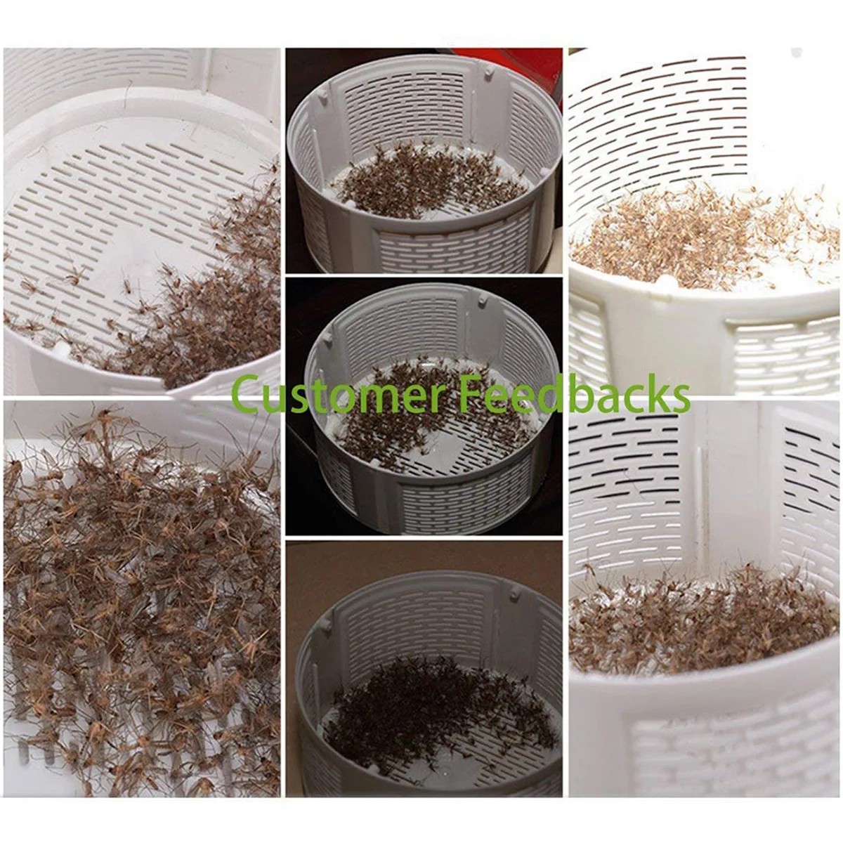2, легко чистить: Просто снимите ящик для ловушки комаров, большая емкость для хранения комаров может легко удалить и справиться с мертвыми комарами с простым поворотом. Водонепроницаемая Москитная лампа может быть помещена в воду для очистки.