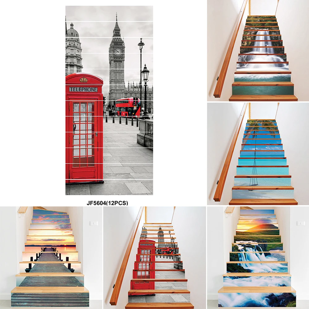 * 12 шт. самоклеящаяся лестница подъемная наклейка для лестницы живописная Настенная Наклейка водонепроницаемая