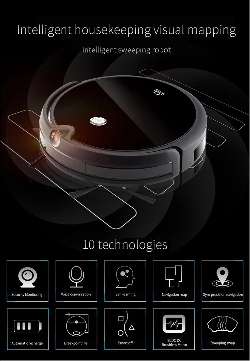 3: Автоматическая перезарядка, интеллектуальный выход, бесщеточный двигатель постоянного тока BLDC, всасывание 1200Pa