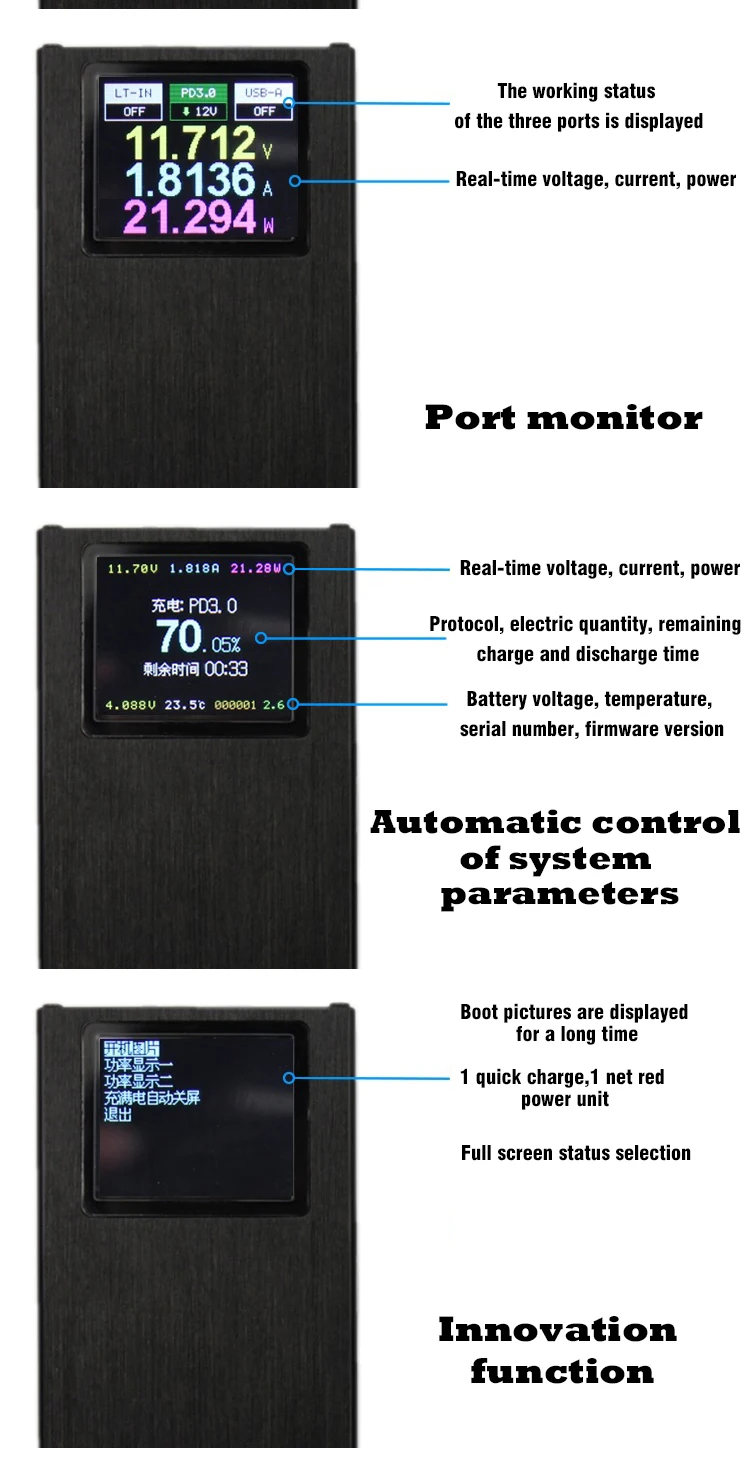 1.35E-это обычный совершенно новый аккумулятор с внутренним сопротивлением 20 миллиом и без защиты PTC, но внутреннее сопротивление очень низкое 2. LG имеет встроенную защиту PTC, абсолютно новый оригинальный аккумулятор, большое внутреннее сопротивление 3. Старая батарея, низкая цена, неизвестный срок службы 4. GA-это оригинальный аккумулятор Sanyo с большой емкостью, стабильностью, долгим сроком службы и защитой PTC 5.C6-это оригинальный аккумулятор SONY VTC6 с низким внутренним сопротивлением Поэтому, пожалуйста, приобретайте по мере необходимости, потому что это Дополнительный внешний аккумулятор Параметр Аккумулятор: 3 аккумулятора 18650 (около 10000 мАч) Мощность зарядки: максимум 22 Вт Выходная мощность: максимум 2 Вт (выходная мощность индивидуального протокола до 5А) Протокол зарядки: Поддержка AFC, FCPPDSCP и других быстродействующих входов (до 12 В) Протокол разрядки: Поддержка DCPPD, PPS, QC20QC30, QC4 + AFC FCPSCPVOOC, MTK и т. д. (до 12 В) P3S архитектура системы: Дизайн корпуса: матовый корпус из алюминиевого сплава, передняя и задняя фаски, конструкция раковины Низкое внутреннее сопротивление защита MOS, большой объем 56MOS внутреннее сопротивление как низко как 07mQ (несколько десятков раз меньше, чем обычная зарядка сокровище десятки mQ mos) низкое внутреннее сопротивление высокая сила тока индуктор: индуктор Magc (цена магического индуктора в 4 раза превышает цену обычного индуктора 1210 большой MLCC 7 (большая частица MLCC в 30 раз превышает цену на 0805 чипового конденсатора) 1206 выходной фильтр MCC Murata 3 Большой объем и большой пруд фильтр батареи: 100 мкФ (100 мкФ большой пруд в 0 раз превышает цену 0805 конденсатора) Твердые конденсаторы SEP добавляются к выходному фильтру (один EP solid в 15 раз превышает цену Taobao 2 Grow solid) Интерфейс, A порт 5А с высоким током, C порт, обычный TYPE-C, L порт, медный корпус, женское сиденье Соединение батареи использует 2 мм силиконовый провод для эффективного уменьшения внутреннего сопротивления Высокомощный резистор для выборки Освещенный модуль ESD высокой мощности В конструкции цепи используются пути короткого тока, высокий ток, высокая мощность и низкое внутреннее сопротивление импортных компонентов, эффективно снижая внутреннее сопротивление всей системы, увеличивая скорость и уменьшая тепло.