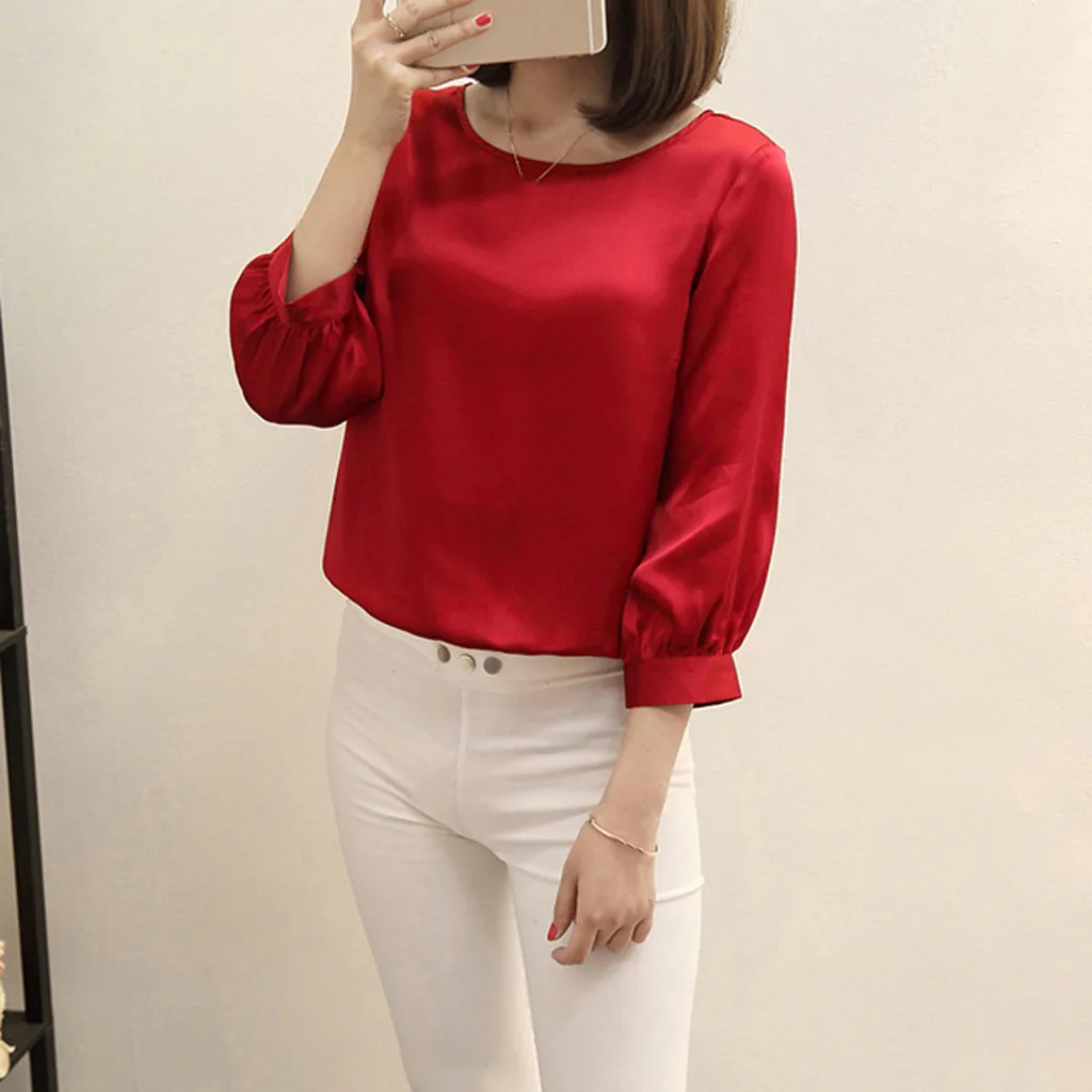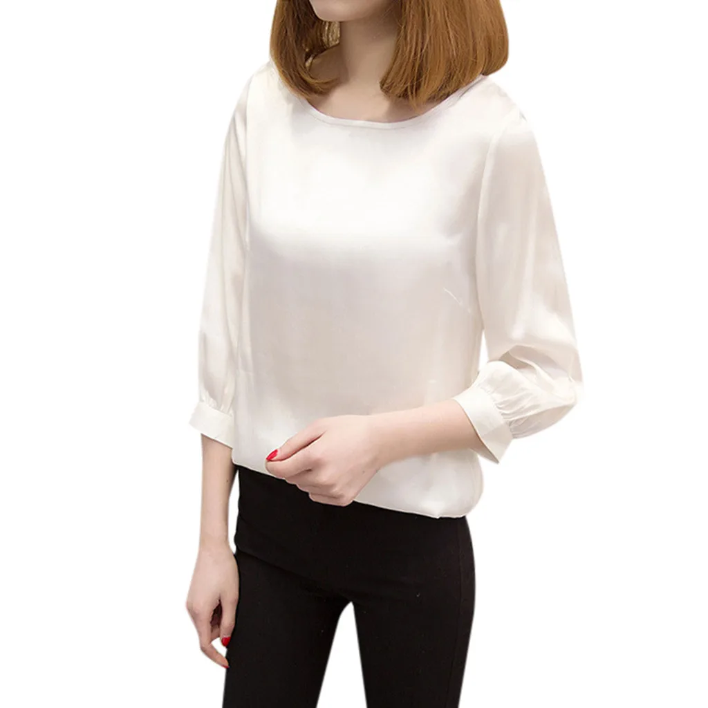 Женская короткая Офисная Рабочая одежда, рубашки с круглым вырезом и рукавом три четверти, повседневные топы