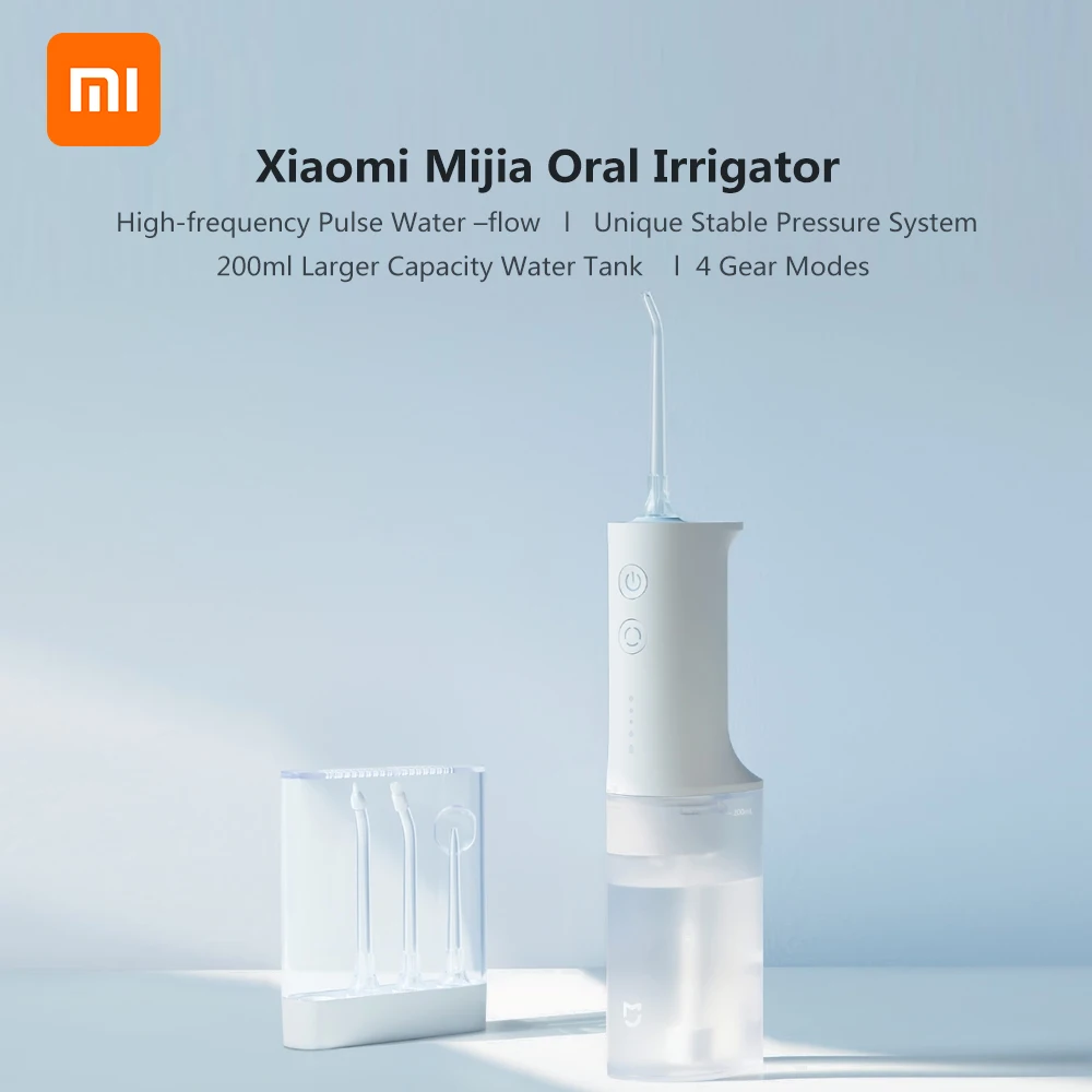 Портативный ирригатор для полости рта Xiaomi Mijia, зубная нить для струйной очистки зубов, мундштук для чистки зубов, щетка для очищения зубов с зарядкой от USB 2200 ма/ч, резервуар для воды 200 мл