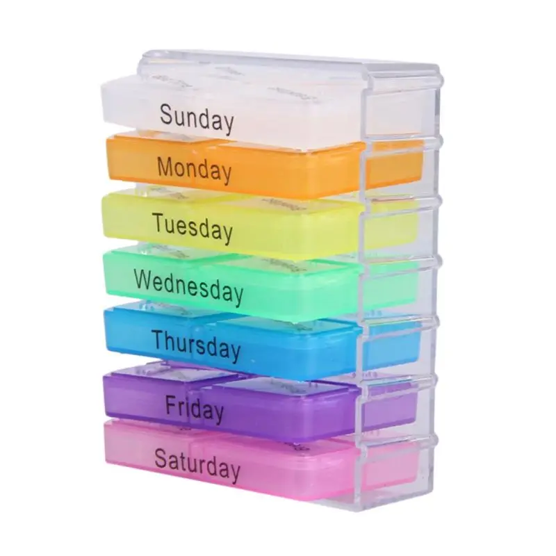 Яркий цвет s: Внешний чехол разработан прозрачно, и каждый лоток имеет уникальный яркий цвет для пользователя, чтобы легко различить дни недели.