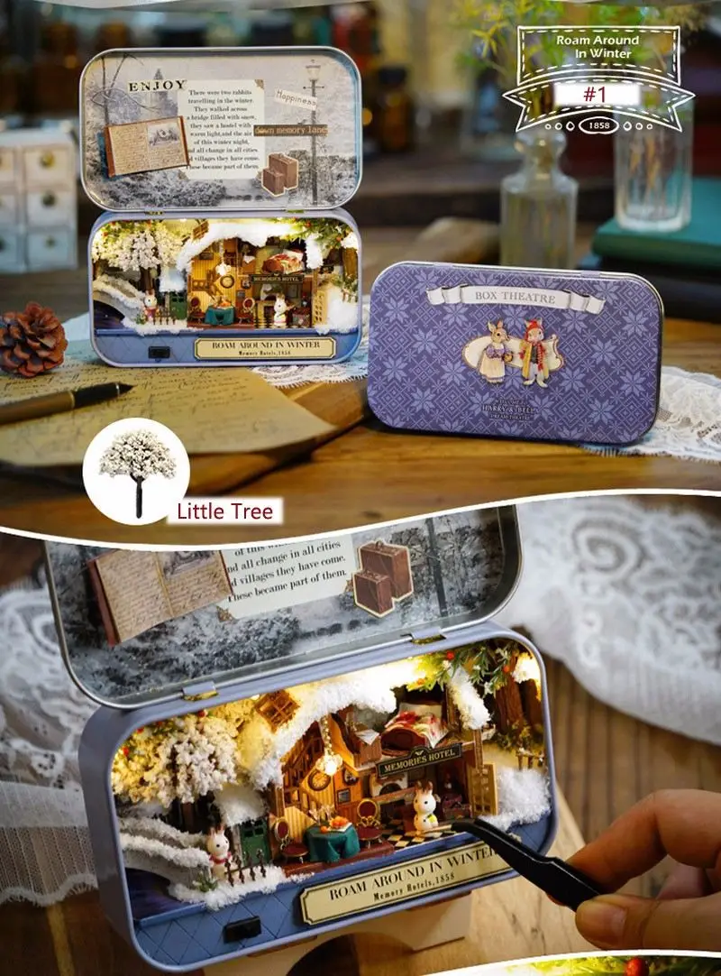 Оловянная шкатулка в стиле ретро, ручная сборка, сделай сам, милый домик для спальни, старый раз, СВЕТОДИОДНЫЙ Подарок для домашнего декора