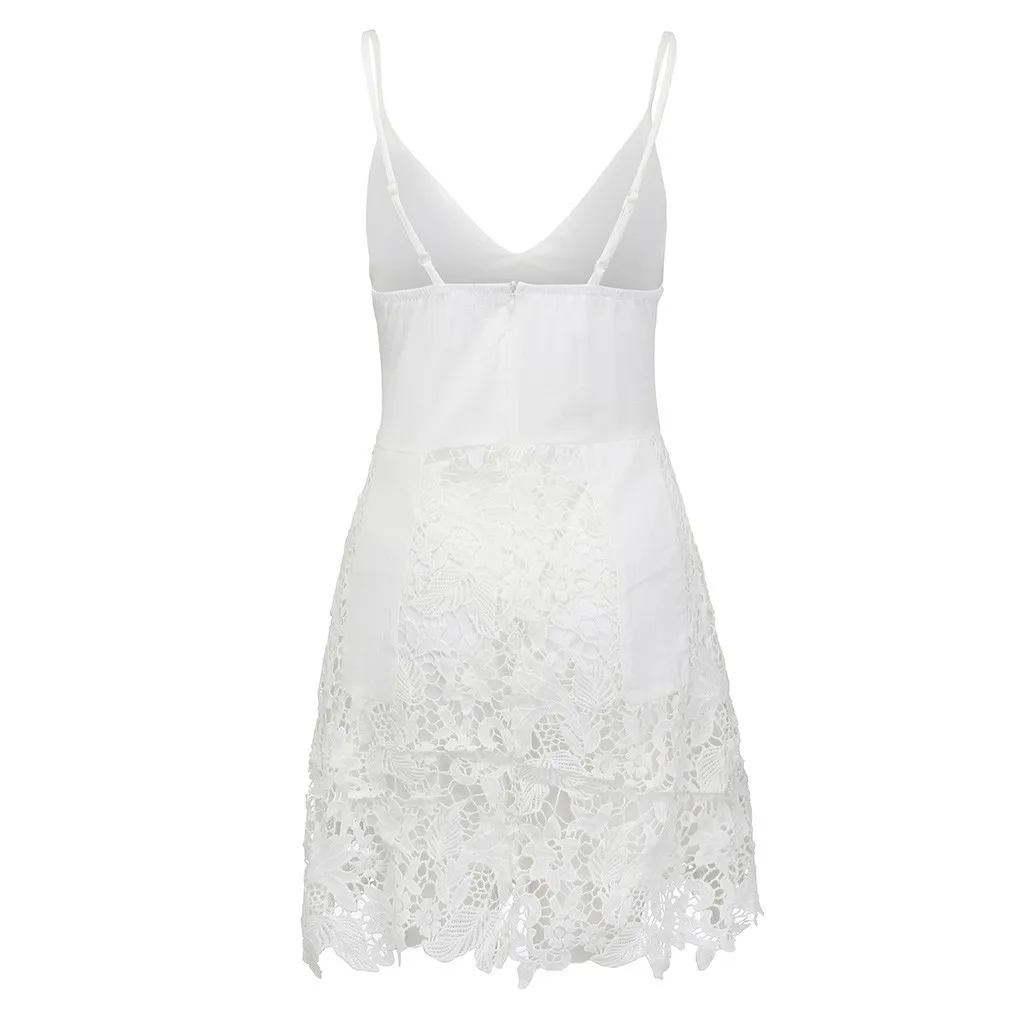 Особенности: открытая спина, без рукавов, однотонный, v-образный вырез, кружево, а-силуэт, мини-платье, пляжный стиль, вечерние платья, платье-майка, сексуальная одежда, платье с цветочным рисунком, летнее и весеннее платье.