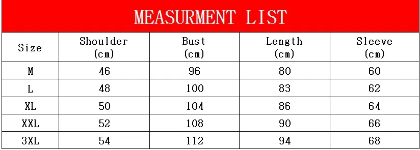 Таблица размеров