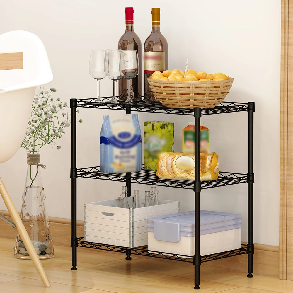 Эта стойка для хранения изготовлена из углеродистой стали, с трехслойным стеллажем, может использоваться на кухне и в других местах, чтобы помочь организовать мелкие предметы.
