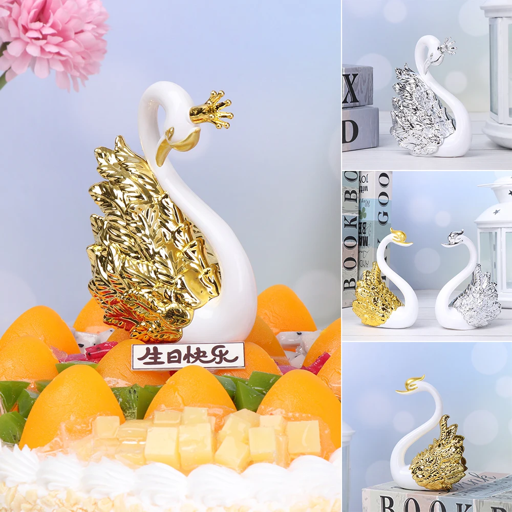 Золотой, серебряный, перо, лебедь, корона, украшение для торта на день рождения, лебедь, топпер для торта на вечеринку, День Святого Валентина, свадебный торт, принадлежности