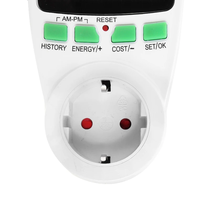 Этот измеритель мощности является инструментом мониторинга и тестирования, который показывает расход энергии подключенного устройства и стоимость используемой силы тока. Лучший способ сэкономить энергию в повседневной жизни и в выходные дни.