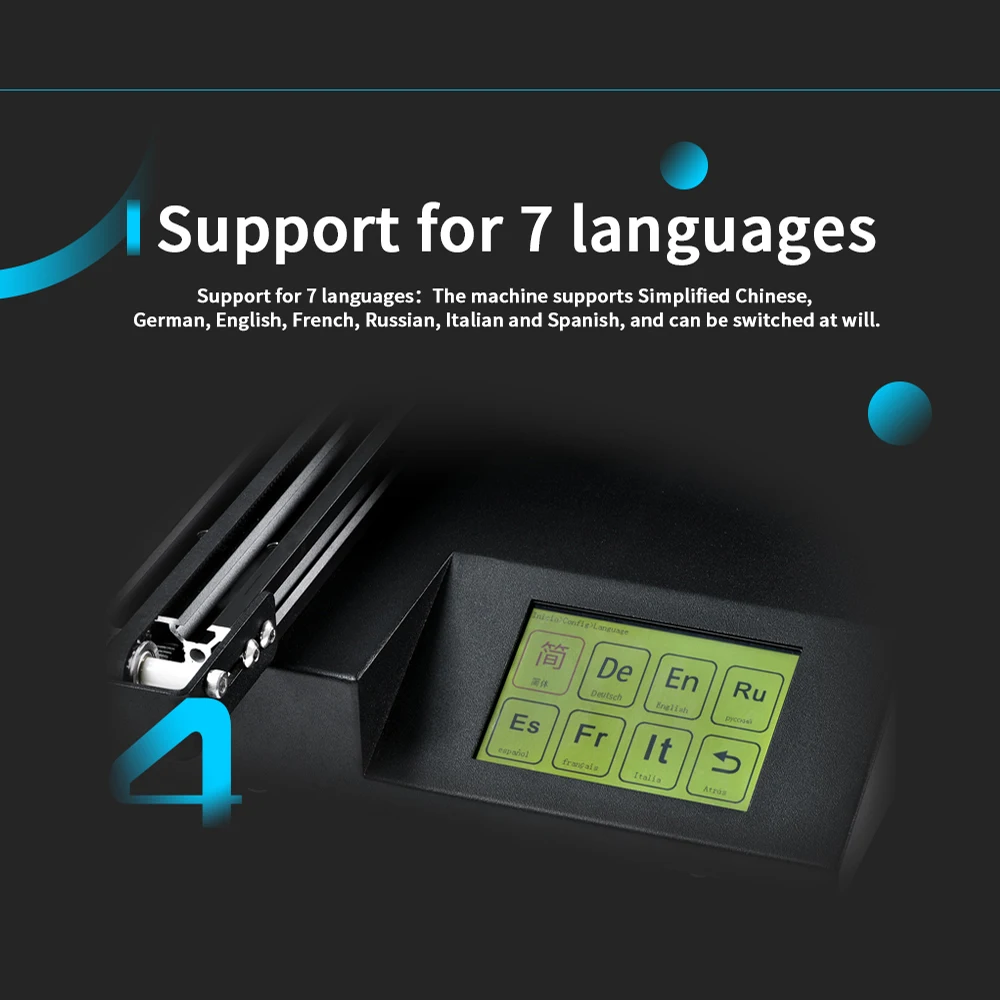 Источник питания Mingwei выбран для обеспечения безопасности и низкой неисправности печати. С 3,5 дюймов Полноцветный сенсорный экран, простой в использовании. Поддержка 7 языков, китайский/немецкий/английский/французский/русский/испанский/итальянский.