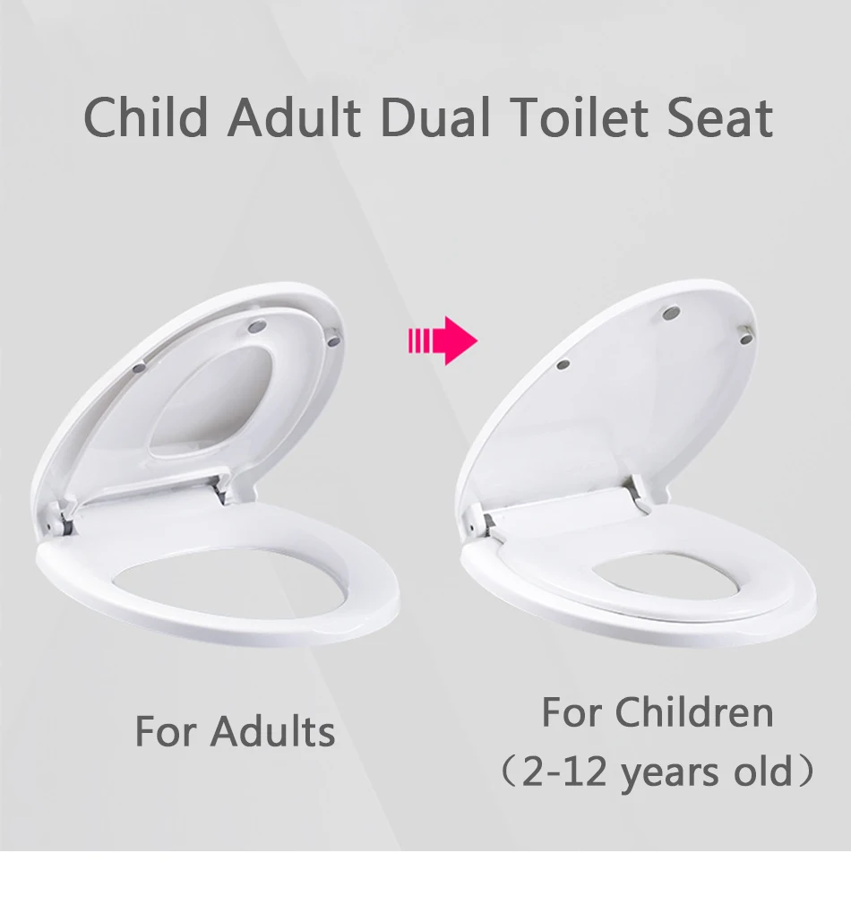 Детям пора начать обучение использованию туалета, когда ребенок достигнет определенного возраста. Это сиденье для унитаза предназначено как для детей, так и для взрослых. С двойными сидениями, это не только позволяет взрослым удобно использовать туалет, но и дает детям хорошее чувство безопасности. Это позволяет избежать опасности, вызванной использованием детьми туалета для взрослых независимо и отвечает требованиям всей семьи.