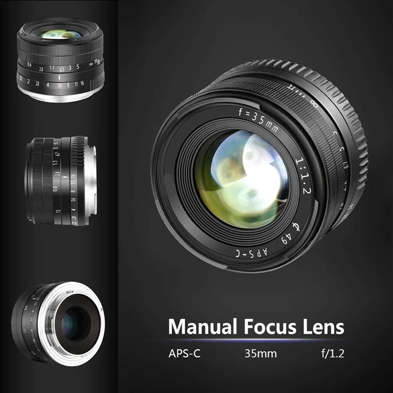 Убедитесь, что это подходит для входа в номер вашей модели. 35 мм F1.2 Объектив: 7 элементов в 5 групп; Ручной фокус основной фиксированный объектив