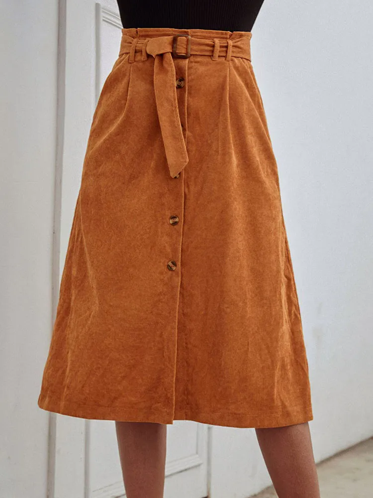 Женский вельвет Юбка До Колена с высокой талией и пуговицами
