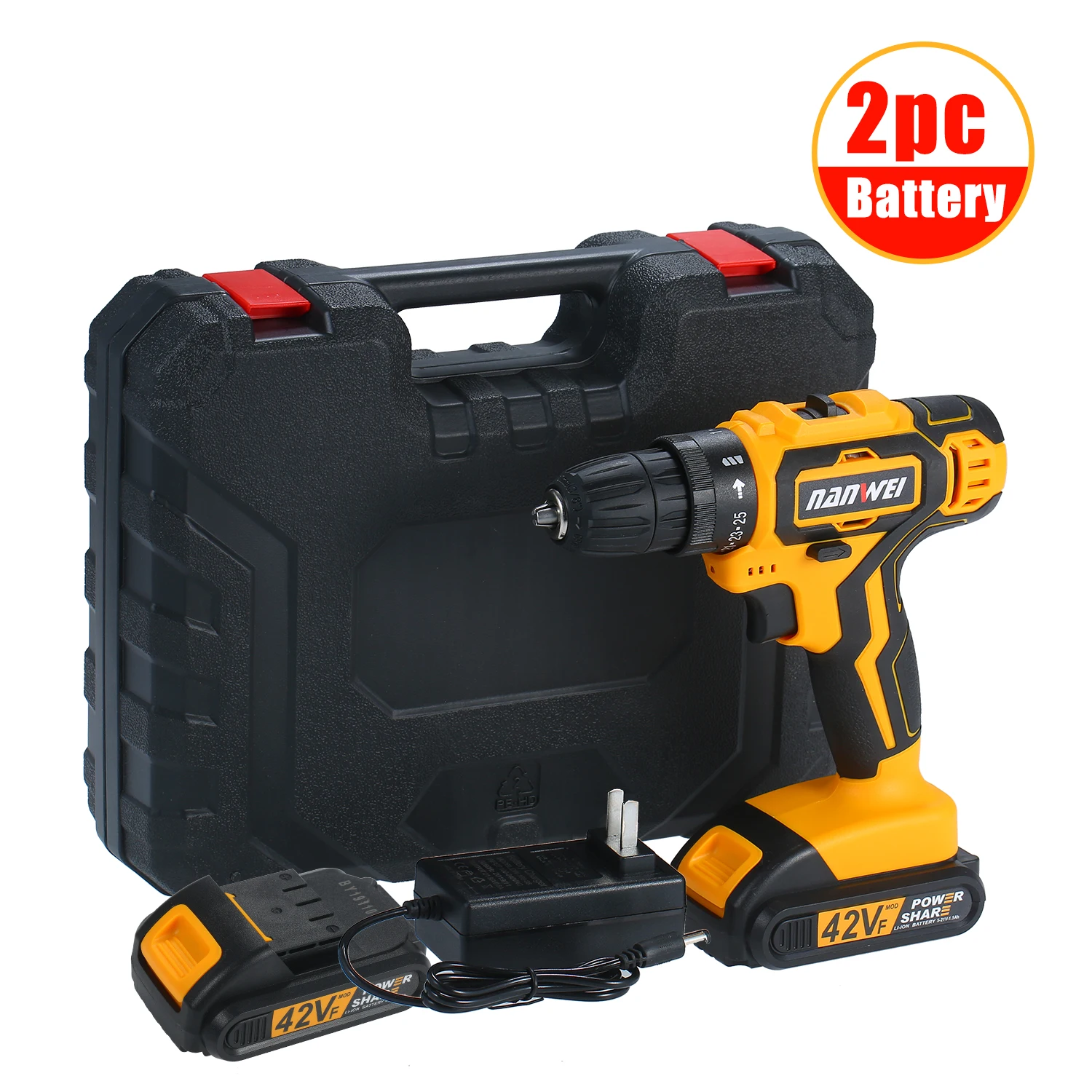 2 шт. литий-ионная батарея и быстрое зарядное устройство --- 7500 мАч большая емкость литий-ионных батарей и 2-часовое быстрое зарядное устройство, которое может использоваться в течение длительного времени после каждой зарядки. Дополнительный аккумулятор всегда готов к использованию без ограничений. Вы можете постоянно работать над своей задачей.