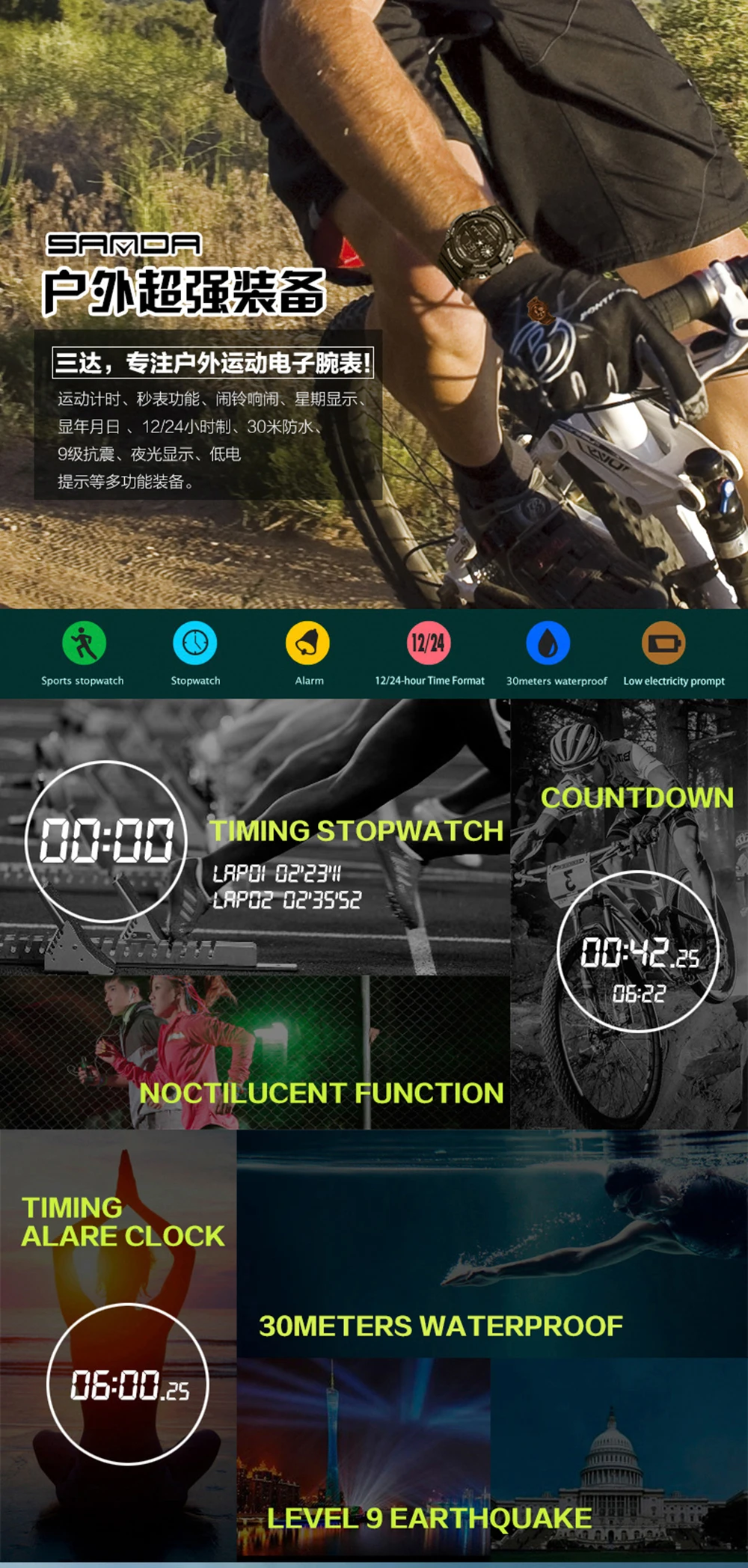 -Светодиодный цифровой прибор с аналоговыми часами;