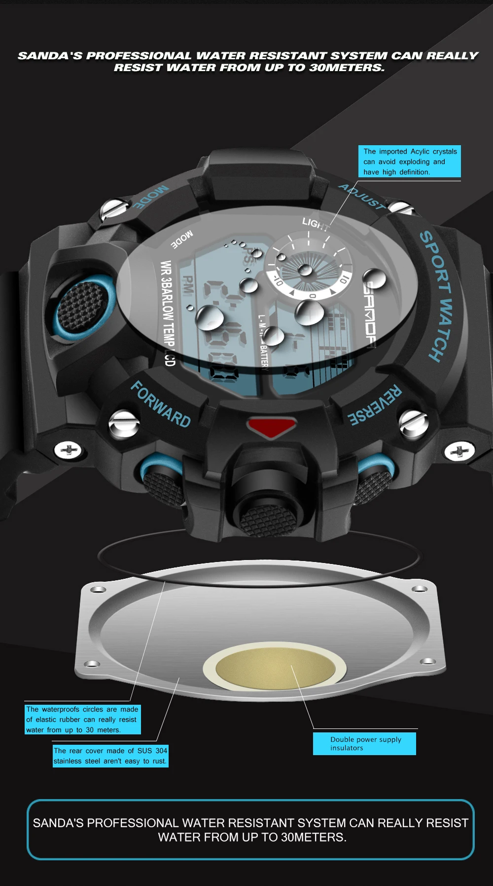 Водонепроницаемость: 30 м, водонепроницаемость
