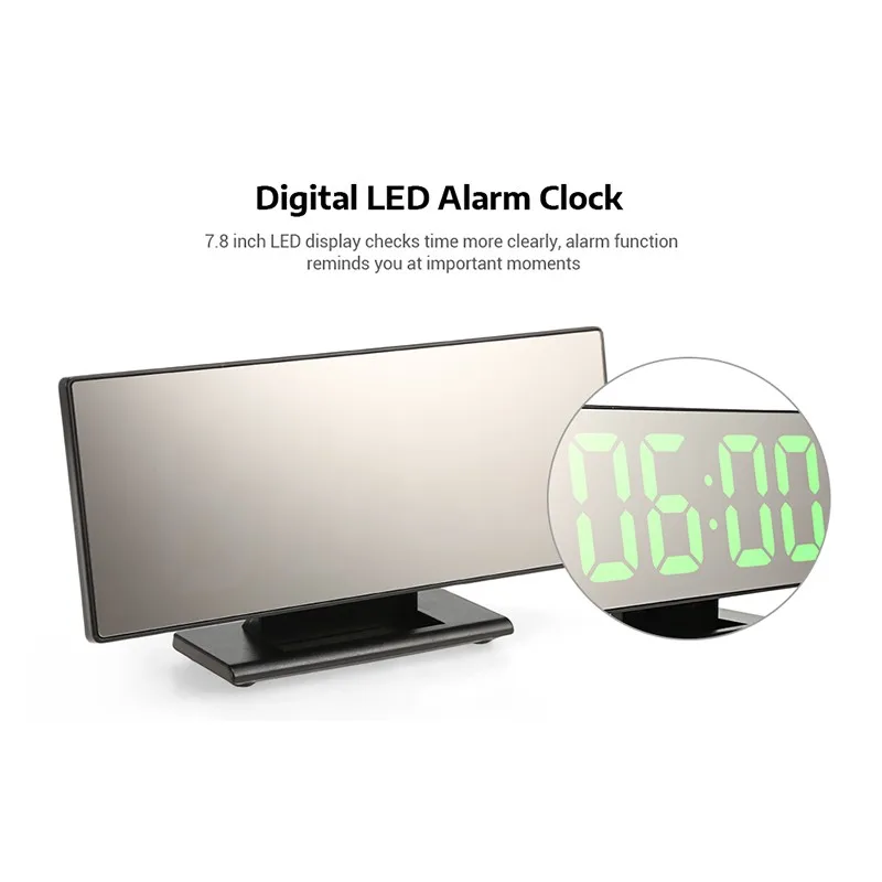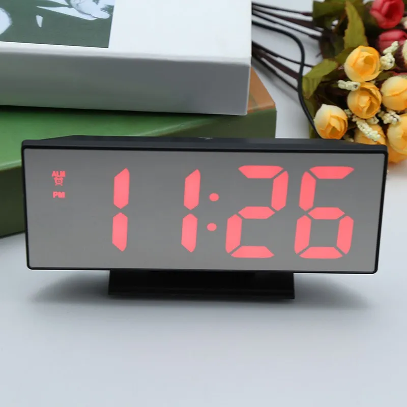 Светодиодные электронные цифровые многофункциональные часы, бесшумная зеркальная сигнализация, отображение даты, 12/24 часовой переключатель, температурный дисплей, рабочий стол, будильник