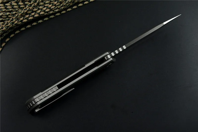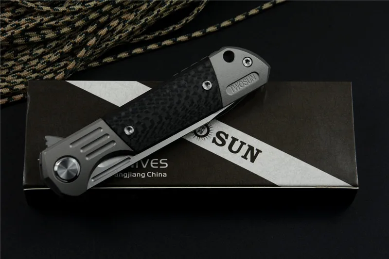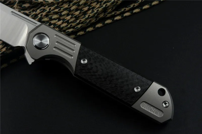 Модель товара: TS49 Дизайн изделия: ночное утро Общая длина: 200 мм (7,87 ") Длина клинка: 85 мм (3,35 ") Длина рукояти: 110 мм (4,33 ") Толщина клинка: 3,8 мм (0,15 ") Ширина клинка: 22,5 мм (0,89 ") Материал клинка: Сталь D2 Отделка клинка: сатин (ЧПУ шлифовка) Твердость: 59HRC Шпиндель: керамические шарикоподшипники KVT Вес нетто: 4,16 унции (118 г) Материал рукоятки: углеродное волокно TC4 с титановой вставкой Посылка: коричневая коробка