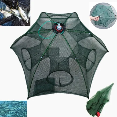 Складная сеть-ловушка для крабов, литая клетка для окуня, рыболовная сеть для рыбных гольян, Дизайн зонта для Раков и креветок, 1 шт.