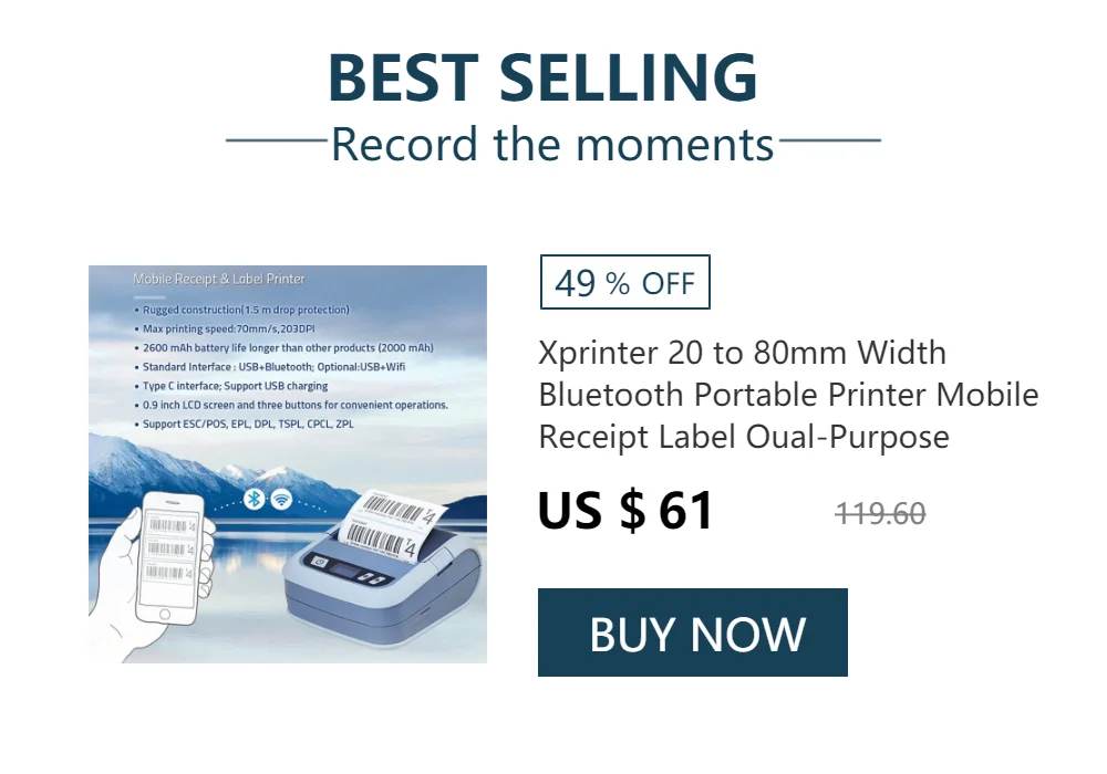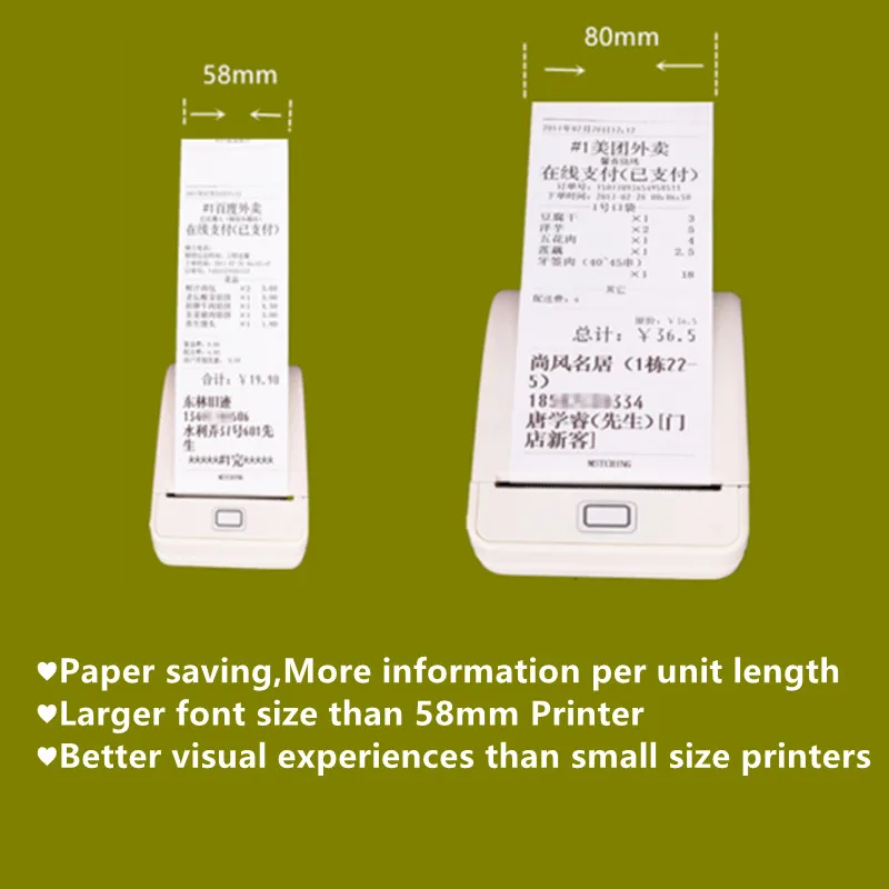 Небольшой размер и светильник, который легко носить с собой для работы, такие как печать счетов, Административная оплата, печать чеков, печать почтовых чеков, печать информации о заказе ресторанов, и т. Д.