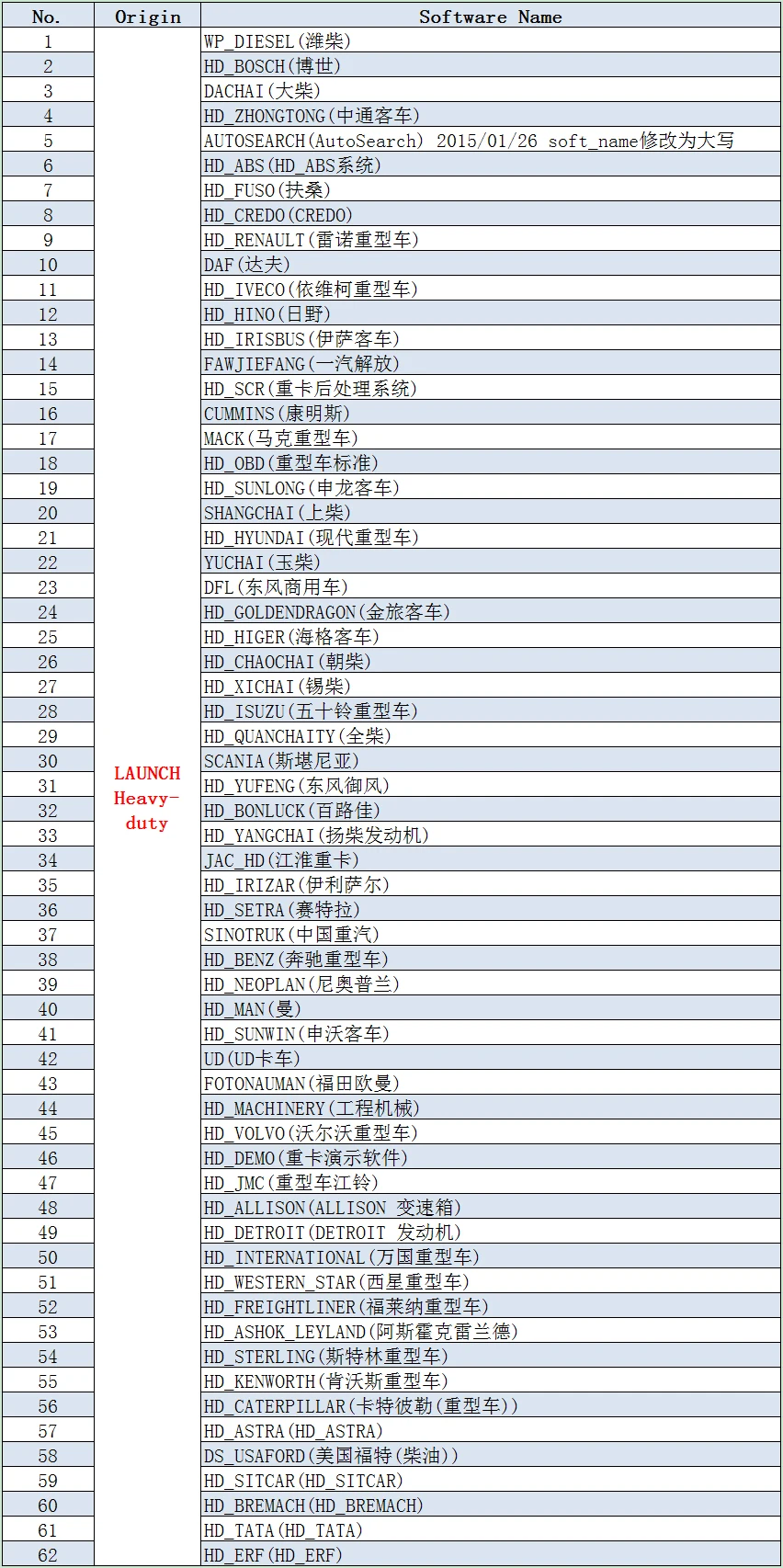 34 автомобиля Brabds программного обеспечения, поддержка более чем 60 моделей автомобилей. Кроме того, программное обеспечение постоянно разрабатывается.