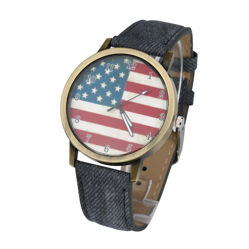 Модные женские часы в стиле ретро с изображением американского флага, кожаный ремешок, кварцевые часы Vogue, наручные часы для девочек, подарок для женщин, reloj mujer