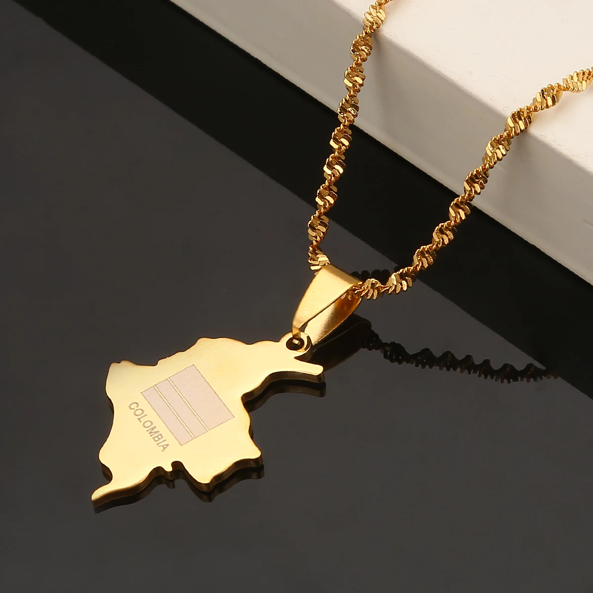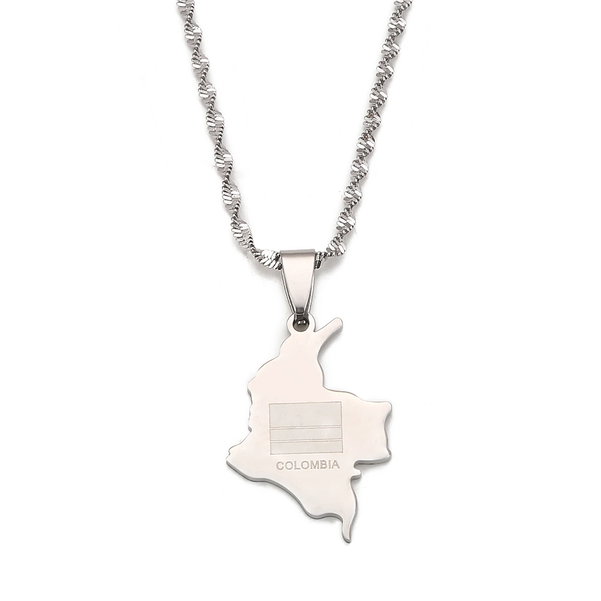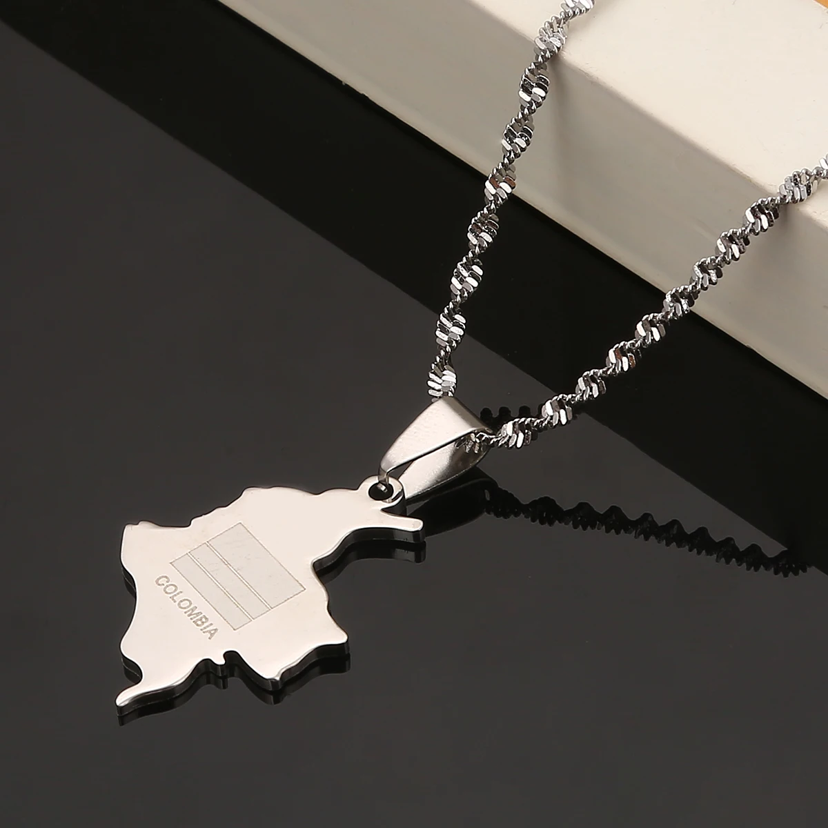 Ожерелье из нержавеющей стали серебряного цвета с изображением карты Колумбии, трендовая карта колумбийских ювелирных изделий