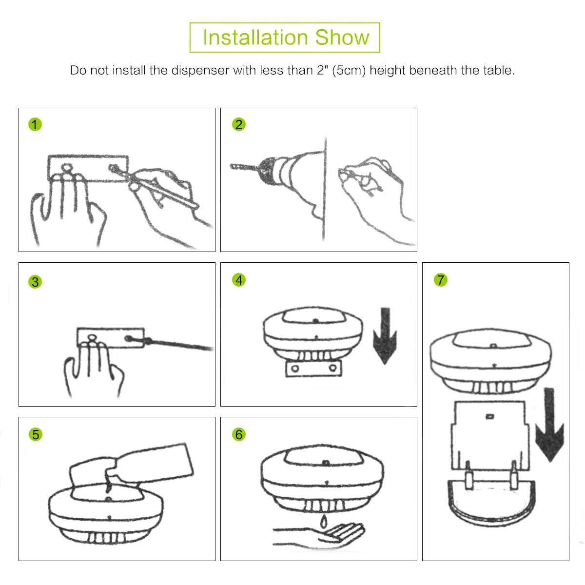Особенности: Чистый и безопасный: Встроенный умный инфракрасный датчик движения, полностью автоматическая и Бесконтактная работа, больше не контактирует, чтобы избежать второй перекрестной инфекции. Экономьте свои деньги: выбивайте максимум 1 мл жидкости, устраняйте отходы и беспорядок с столешницей. 450 мл Экстра большой емкости, идеально подходит для лосьонов, шампуней, жидкого мыла или дезинфицирующих средств и т. Д. Простота в использовании: настенный, питание от аккумулятора 4 * AA (не входит в комплект), без проводки, простота установки. Светодиодный светильник с индикатором, более удобный в использовании в ночное время. Высококачественное Качество: материал ABS для изучения, нетоксичный, термостойкий и устойчивый к царапинам, долговечный в течение многих лет использования. Подходит для ванных комнат, кухонь, детских садов, офисов, школ, больниц, портов, отелей и ресторанов. Примечания: 1. Не устанавливайте дозатор с высотой менее 2 " (5 см) под столом. 2. Датчик находится в основании диспенсера. Диапазон эффекта составляет 0-10 см под датчиком. 3. Этот диспенсер предназначен только для использования в помещении. Прямой солнечный свет или открытые места могут разрушить ИК-датчик продукта. 4. Индикатор низкого напряжения, когда вы постоянно находите светодиодный светильник, мерцающий во время работы в режиме ожидания, необходима замена батареи. 5. Не используйте спирт или другую химическую жидкость. 6. Этот дозатор мыла не является водонепроницаемым. Спецификация: Настенный дозатор для мыла Материал ABS Количество 1 шт Цвет товара белый Максимальная емкость 450 мл Объем капли 0,8-1 мл Эффект расстояние 0-10 см Батарея 4*1,5 V AA Батарея (не входит в комплект) Статический ток 60uA Номинальный ток 200 мА Размер 20,7*14,5*10,5 см/8,7*5,1*4,1 "(Д * Ш * В) Вес нетто 0,52 кг/18,3 унций Посылка 1 * настенный дозатор для мыла 2 * винты 2 * болты 1 * Руководство пользователя на английском языке 1 * коробка для посылка