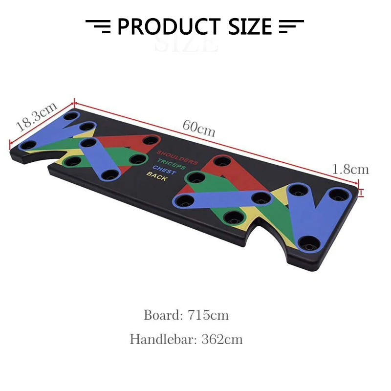 Посылка: тренировочная доска 1*9 в 1 Описание: Пуш-ап-это инновационная система обучения с цветными кодами, которая укрепляет и Формирует весь верх (грудь, плечи, спину и руки), привлекая к себе общее ядро.