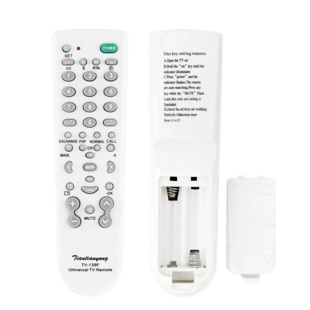 TV-139F Universal Remote Control (Super Version) can meet the needs of different TV products, such as TV sets of old-fashioned, new type, famous domestic or foreign brands and other products with no brands.