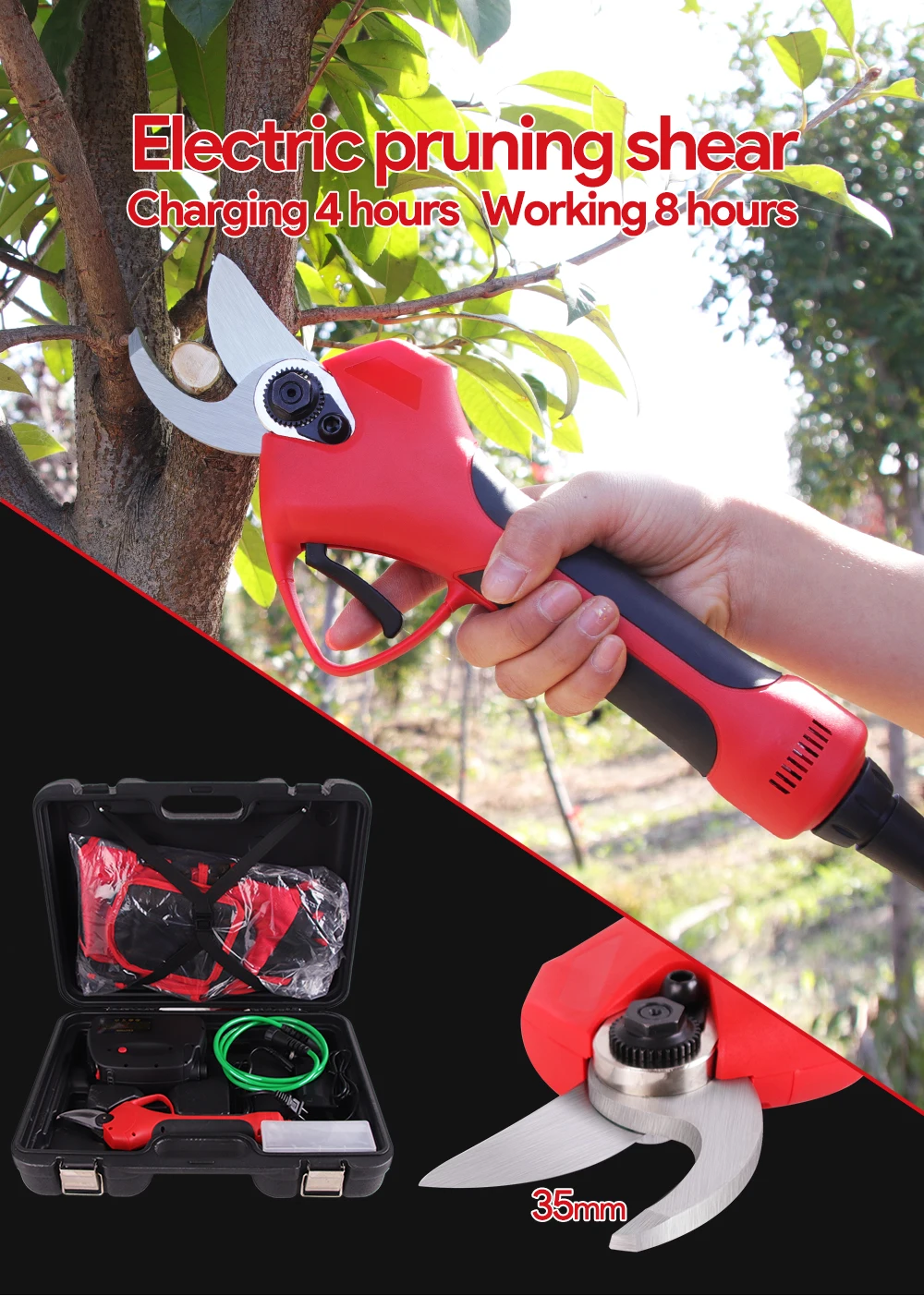 Этот электрический садовый ножница-это сильный и мощный нож из специальной стали. Легкий вес для легкой работы с одной рукой. Этот продукт сочетает в себе безопасность, эффективность и простую работу. При использовании лезвие близко к ветке и равномерно и плавно режет без каких-либо повреждений завода.