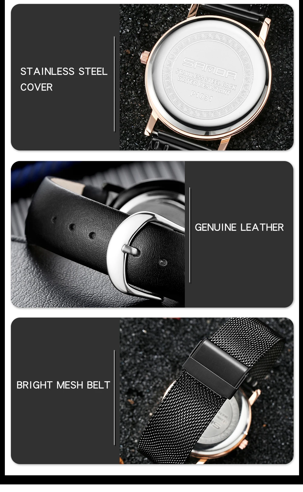 Материал ремешка: сетка из нержавеющей стали/кожа