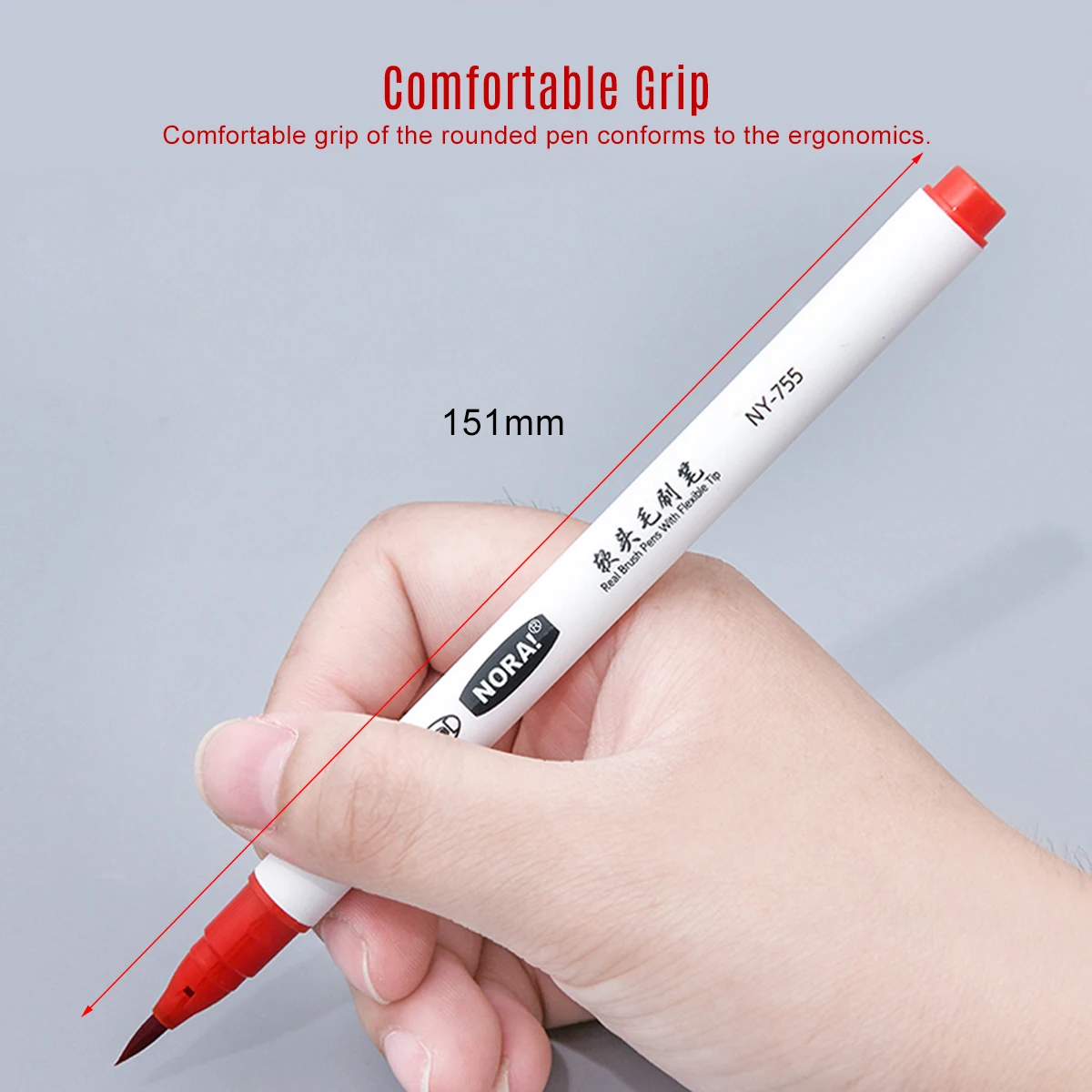 【Мягкий и гибкий тип】:Мягкая головка кисти из импортного волокна, гладкий и ровный выход чернил, износостойкий и без ворса.